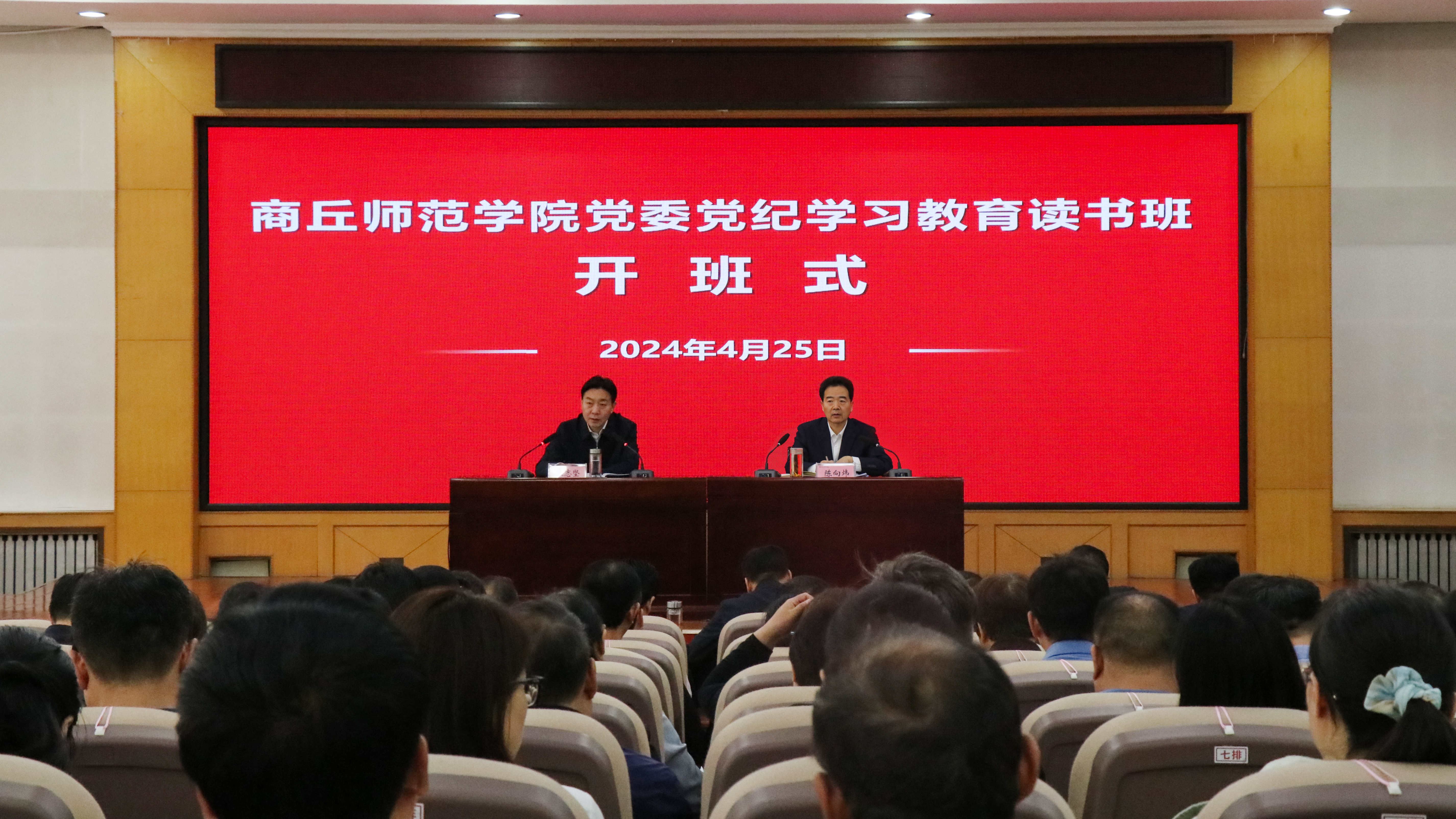 4月25日上午,我校党委党纪学习教育读书班在梁园校区归德楼开班,校党委书记张志坚作动员讲话和专题党课。校党委副书记、校长陈向炜主持开班式。省委党校党史教研部专家郭广平为读书班作专题辅导报告。